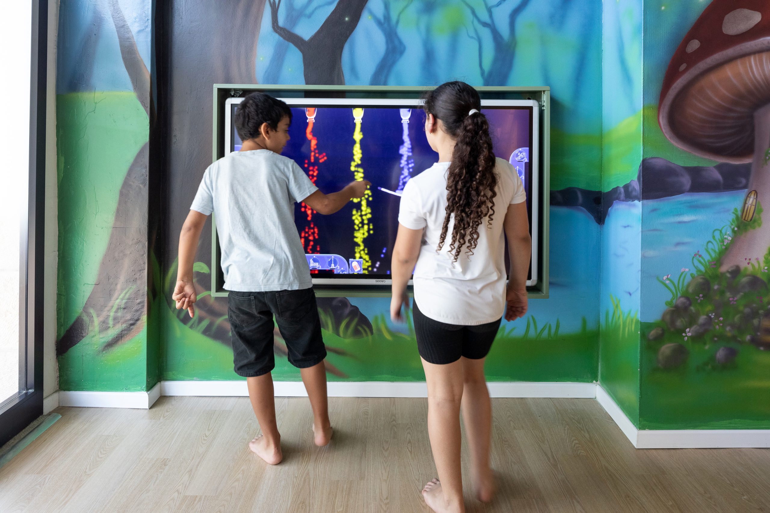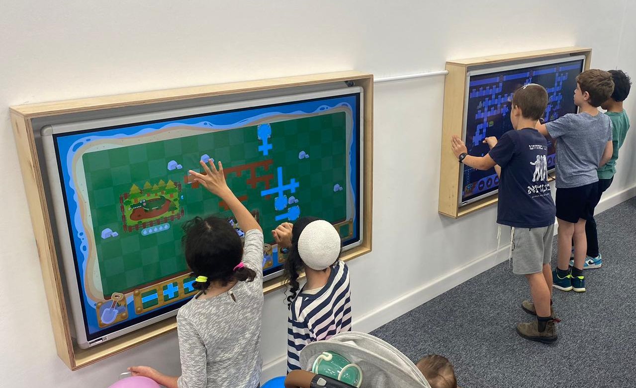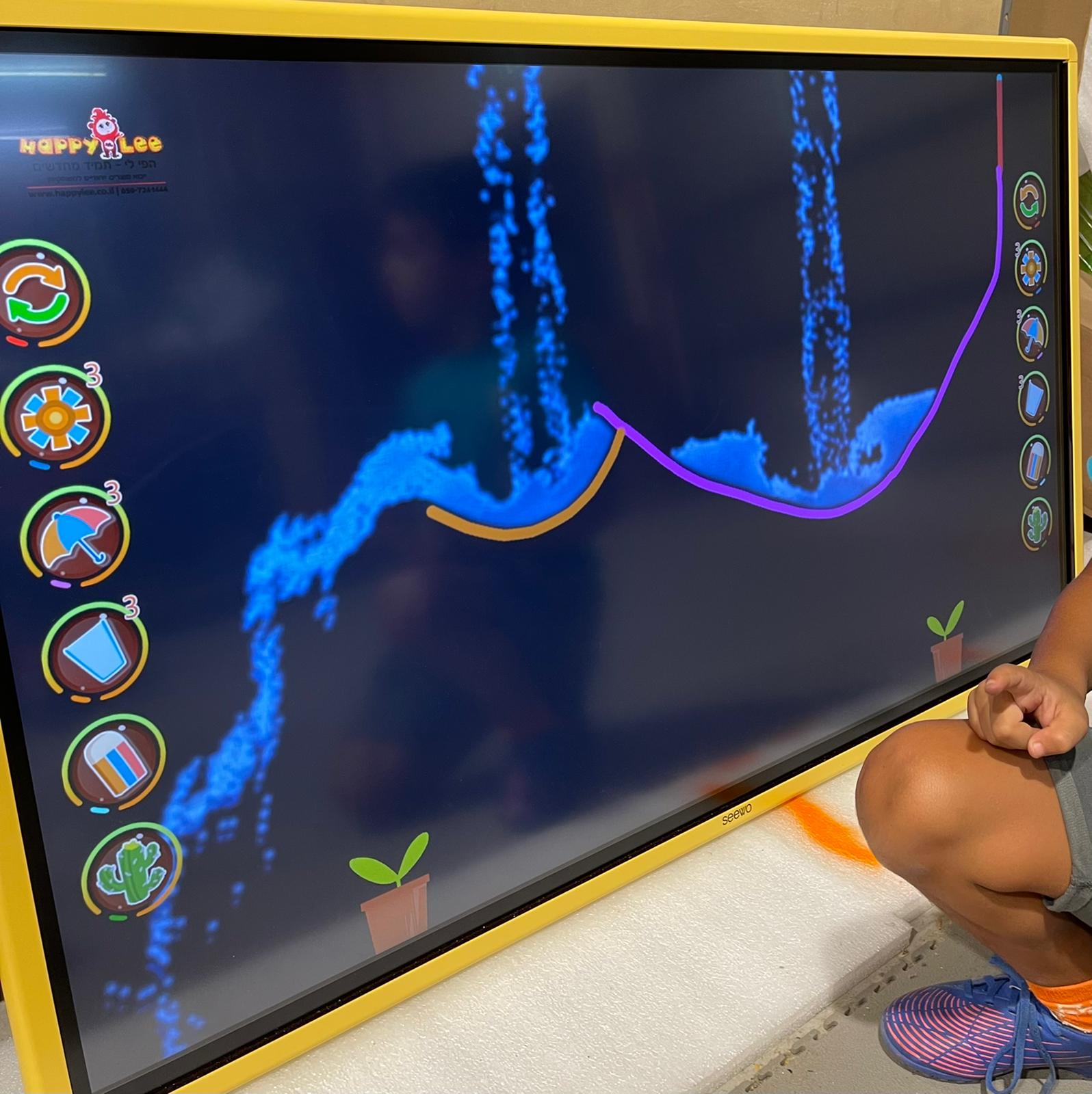 מסך מפל המיםהינו מסך מולטי־טאץ’ חכם עם 8 משחקים אינטראקטיביים המשלבים הנאה עם חשיבה יצירתית ומדעית.