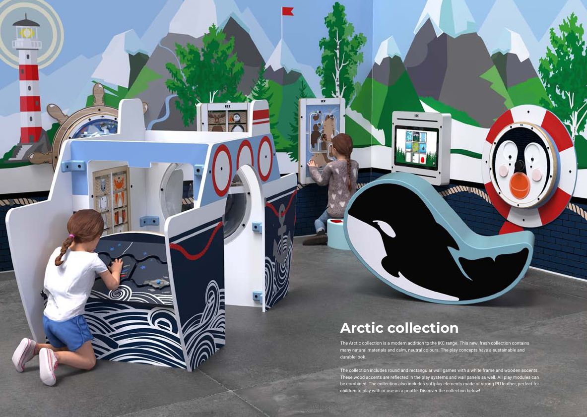 במשחקיות, מרפאות, גנים, חדרי המתנה ופינות בעיצוב ימי או קוטבי.