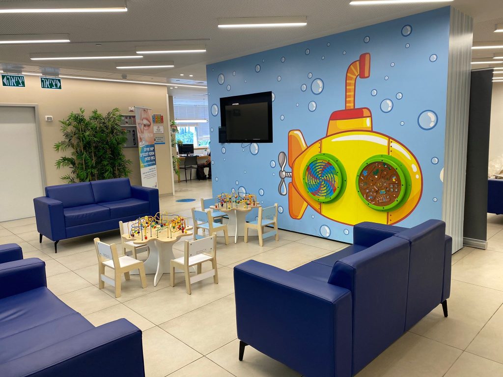 פינת ההמתנה החווייתית באשפוז יום ילדים היא מרחב מעוצב ומותאם אישית לילדים ולמשפחותיהם, שנועדה להפוך את זמן ההמתנה לחוויה נעימה, מרגיעה ומעשירה. המתחם משלב עיצוב צבעוני וחמים עם ריהוט נוח ובטוח, פינות משחק אינטראקטיביות, ספריית ילדים, ומשחקי מחשב או טאבלטים עם תכנים מותאמים לגיל. קירות המתחם יכולים להיות מעוטרים בציורי קיר או הדפסים גדולים של דמויות אהובות, טבע או עולם הדמיון, כדי להשרות תחושת ביטחון ושמחה.