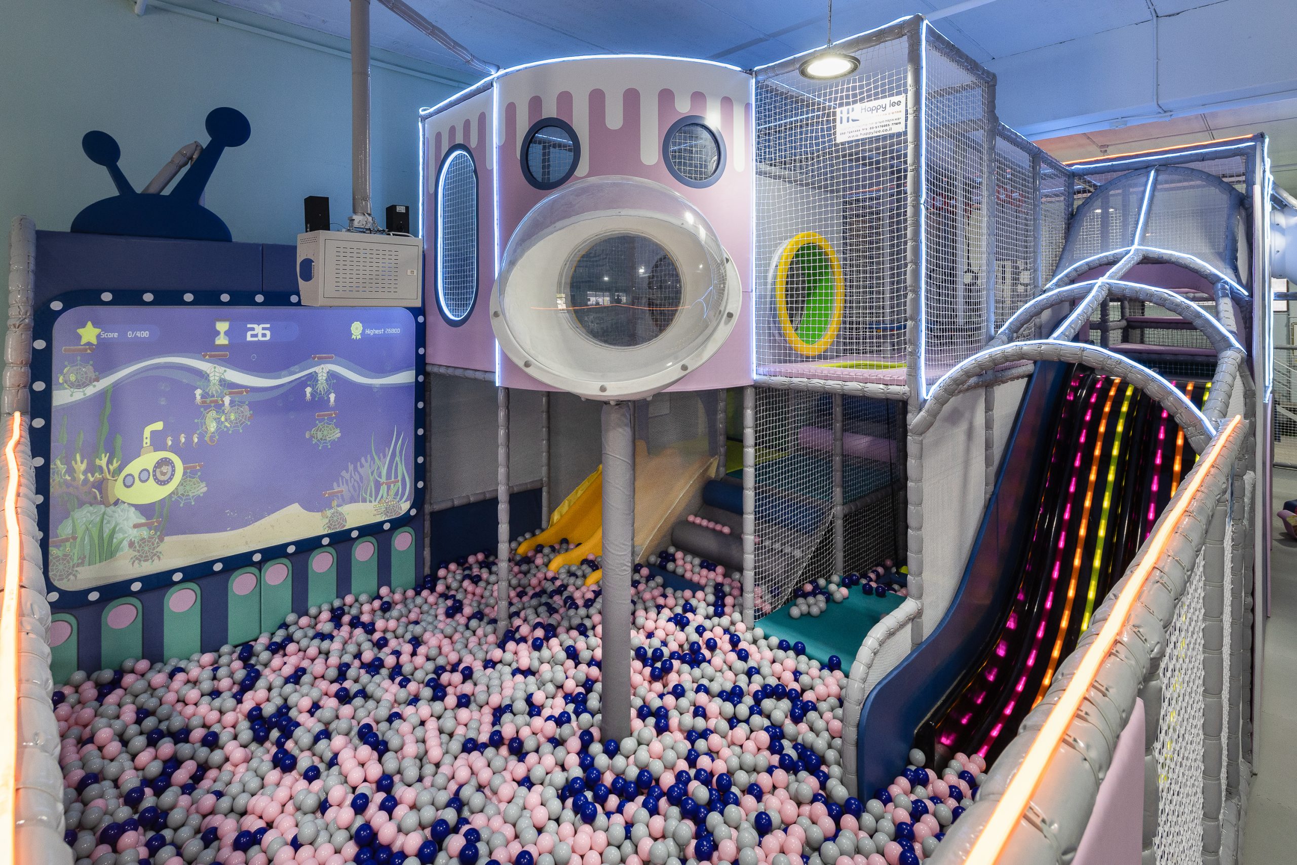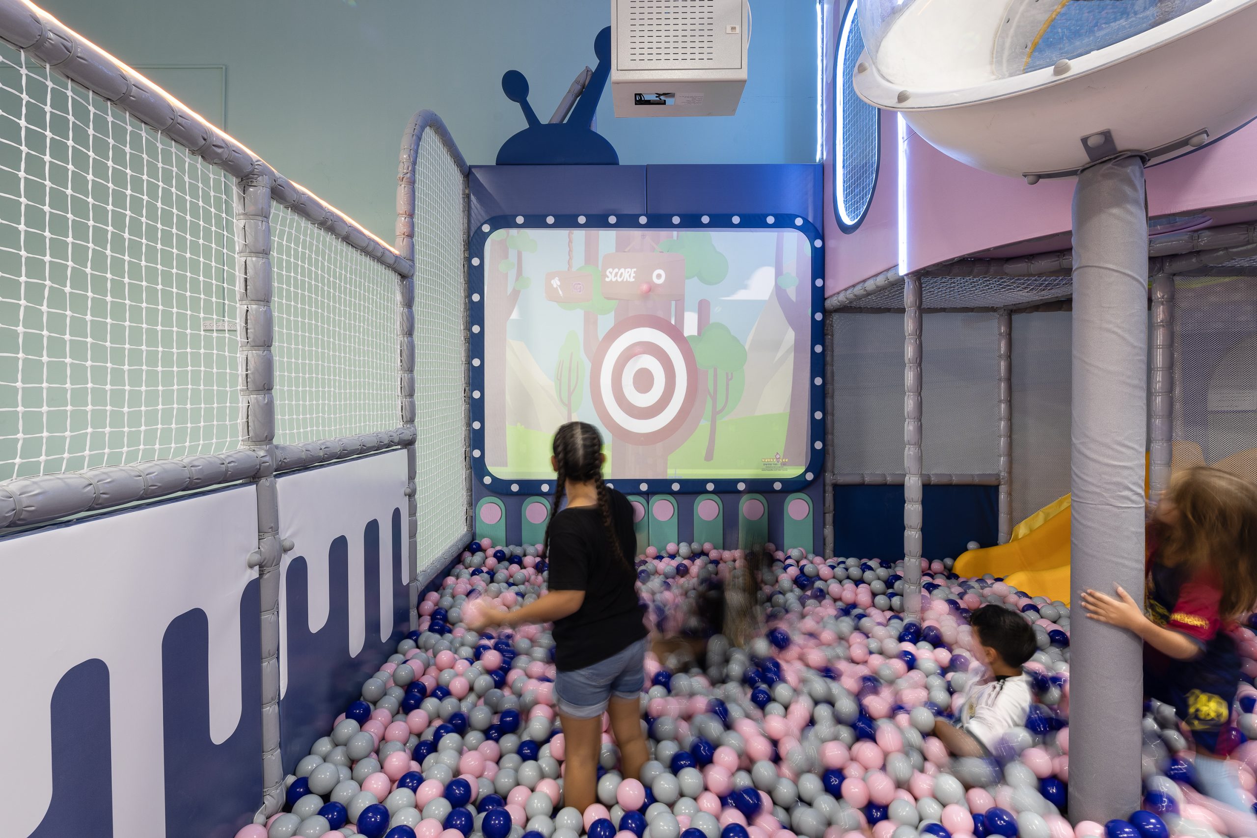 בריכת כדורים ענקית עם מקרן