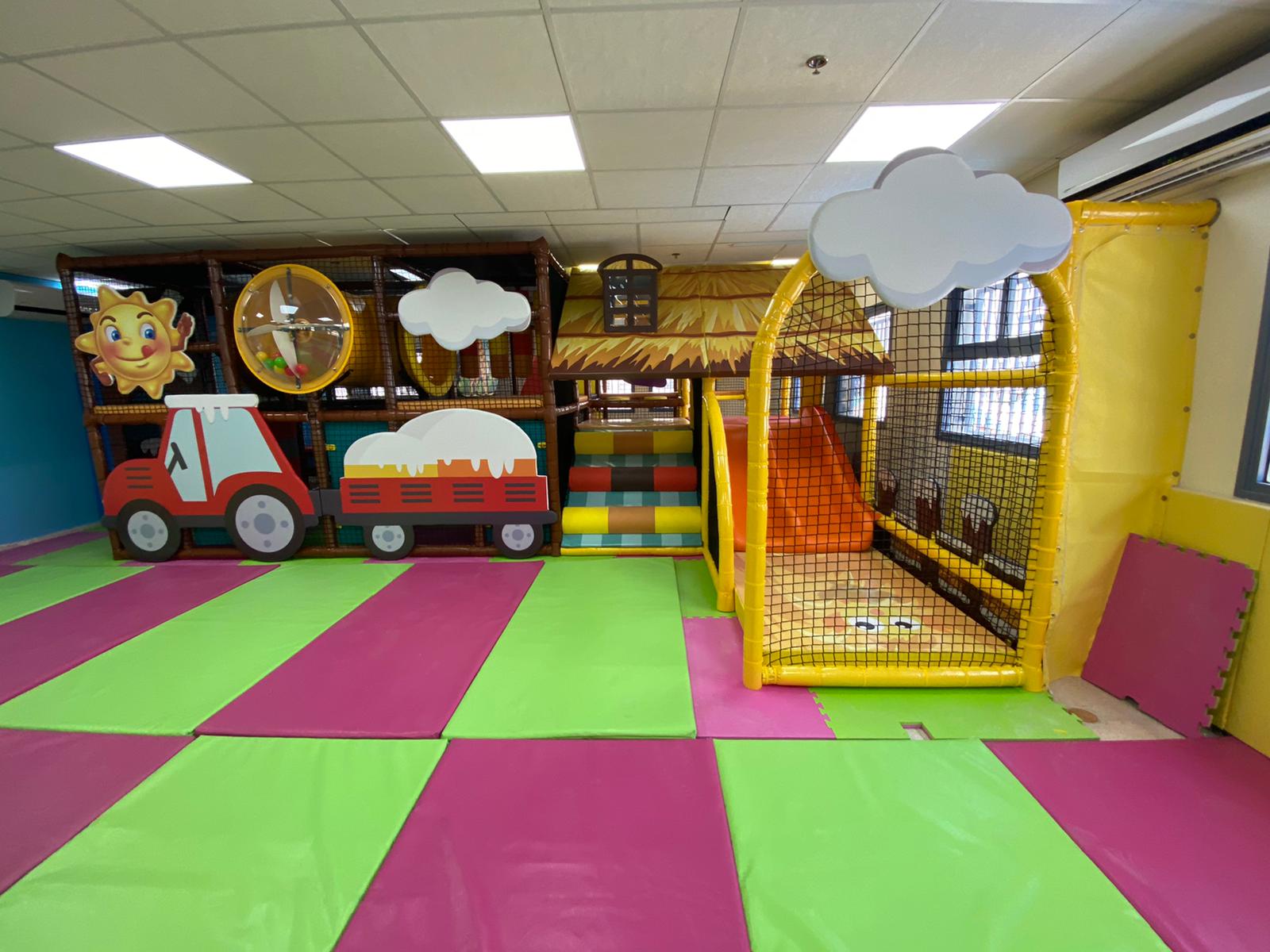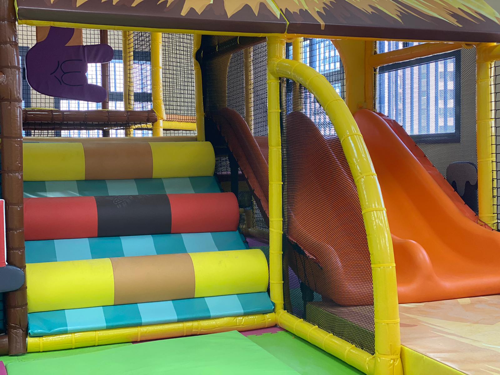 תכננו משחקייה רב-מרחבית שמניעה את הילדים אופקית – עם שילוב של אלמנטים מתקדמים כמו: מסלול נינג’ה אתגרי לילדים הגדולים, אזור טרמפולינה פנימיים, מנהרות, בריכת כדורים משולבת עם טכנולוגיה אינטראקטיבי, מגלשות רכות בשלושה מסלולים, גרפיקה מותאמת אישית למותג הלקוח שמקיפה את כל המרחב ויוצרת עולם שלם.